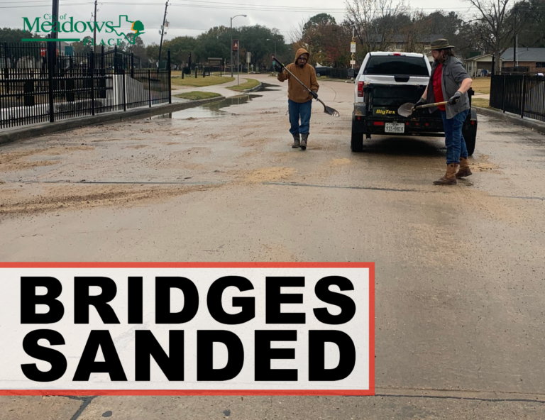 Discover Meadows Place Online Payments Election Information Permits & Licenses Code Enforcement Employment Ask A Question City Directory Online Payments Election Information Permits & Licenses Code Enforcement Employment Report A Concern City Directory Police Parks & Recreation City Updates Stay Up To Date Latest News Community Events Project Updates Bridge Sanding Complete and EOC Partially Activated City Facilities Closed Monday due to Weather Cold Weather Closures Learn to Crochet Country Dance Classes Daddy Daughter Date Night Traffic Alert Eastbound W. Airport Blvd. Aeration Basin Clean Out at the Wastewater Treatment Plant Improvements Being Made Around the City View All News Calendar Upcoming Meetings and Events View Full Calendar