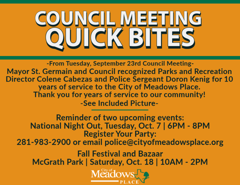 Dear City of Meadows Place Residents, Business Owners & Visitors: